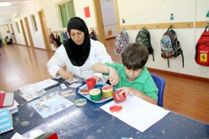 كما نظم المعرض طاولة تضم ضجيج الأطفال وصخب ألوانهم ليمارسون هواية الرسم ومن ثم تعلق لوحاتهم في ركن الأطفال.