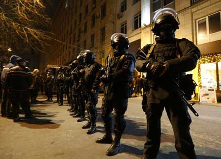 وقتل أكثر من 100 شخص معظمهم بنيران قناصي الشرطة في شوارع العاصمة كييف قبل الاطاحة بالرئيس الأوكراني السابق فيكتور يانوكوفيتش في 21 فبراير شباط وألقيت المسؤولية بدرجة كبيرة على قوات (بركوت).