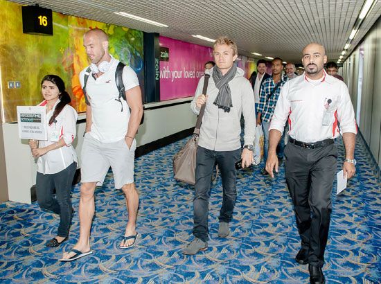 ومن أبرز الواصلين صباح الأمس سائق فريق ماكلارين البريطاني جنسون باتون، سائق فريق فيراري الإسباني فرناندو ألونسو، سائقا فريق مرسيدس البريطاني لويس هاملتون والألماني نيكو روزبرغ وسائق فريق ريد بل ريسنغ الأسترالي دانيال ريتشاردو.