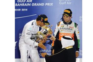 وتفوق هاميلتون على روزبرغ والمكسيكي سيرخيو بيريز سائق فورس إنديا، في طريقه لإحراز لقب سباق جائزة البحرين الكبرى.