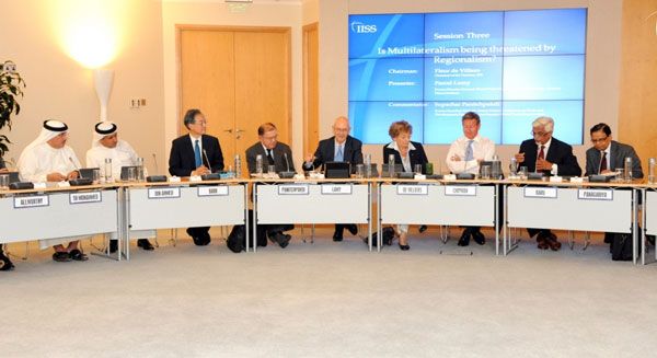 اختتمت مساء اليوم الثلثاء (8 مارس / آذار 2014) أعمال منتدى رفيع المستوى نظمه المعهد الدولي للدراسات الاستراتيجية (IISS) في العاصمة المنامة تحت عنوان "التجارة والعَلَم: التوازن المتغير للقوى في النظام التجاري متعدد الأطراف".