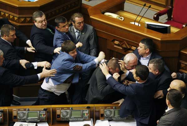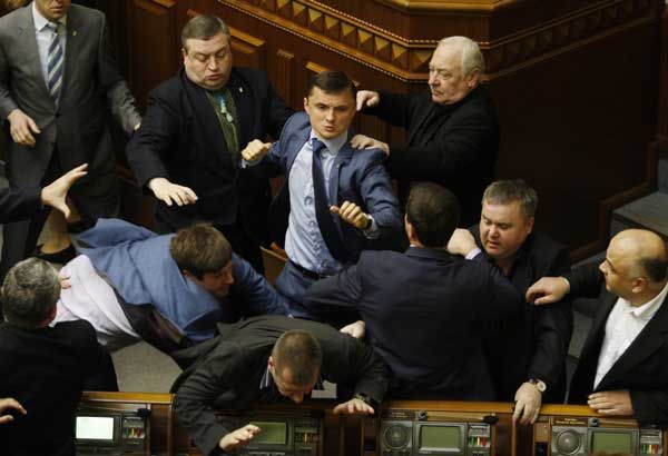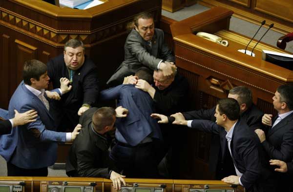 شهد البرلمان الأوكراني اليوم الثلثاء (8 أبريل / نيسان 2014) اشتباكات بالأيدي بين نواب وذلك أثناء النقاش حول الوضع في شرق البلاد.