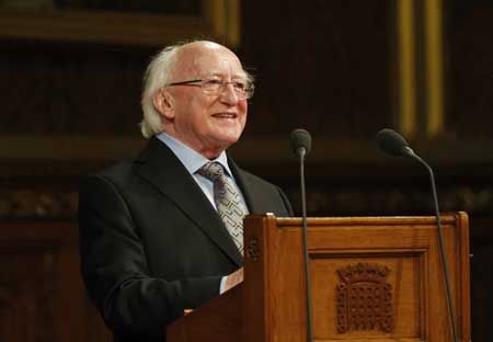 وقال الرئيس الايرلندي مايكل هيجينز في خطاب ألقاه أمام مجلسي البرلمان في بريطانيا اليوم الثلثاء (8 أبريل / نيسان 2014) "أقف هنا في وقت وصلت فيه العلاقات بين جزيرتينا ... إلى تقارب ودفء بدا ذات مره انه بعيد عن التحقيق ". وتأتي الزيارة التاريخية والتي تستمر لمدة أربع أيام وتنتهي يوم الجمعة، بعد مرور أكثر من 90 عاما على استقلال ايرلندا عن بريطانيا كما تأتي بعد الزيارة التاريخية التي قامت بها ملكة بريطانيا اليزابيث الثانية الى ايرلندا في 2011 .