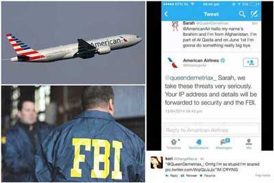 لم تتوقع المراهقة سارة أن تغريدتها التي نشرتها وهي على مثن طائرة تابعة للخطوط الجوية الأميركية على سبيل المزاح ستأخذ على محمل الجد وتصل إلى مكتب التحقيقات الفدرالي، وذلك بحسب ما نشرته صحيفة البيان الإماراتية اليوم.