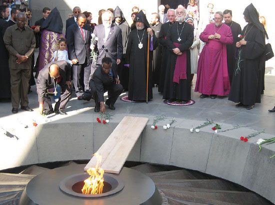 مذابح الأرمن، وتعرف أيضاً باسم المحرقة الأرمنية والمذبحة الأرمنية أو الجريمة الكبرى، تشير إلى القتل المتعمد والمنهجي للسكان الأرمن من قبل الإمبراطورية العثمانية خلال وبعد الحرب العالمية الأولى. وقد تم تنفيذ ذلك من خلال المجازر وعمليات الترحيل، والترحيل القسري وهي عبارة عن مسيرات في ظل ظروف قاسية مصممة لتؤدي إلى وفاة المبعدين. يقدّر الباحثون أن أعداد الضحايا الأرمن تتراوح ما بين 1 مليون و1.5 مليون نسمة.
