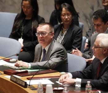 بناء على طلب من روسيا عقد مجلس الأمن الدولي جلسة حول الوضع في أوكرانيا استمع خلالها إلى إفادة من جيفري فيلتمان وكيل الأمين العام للشئون السياسية.