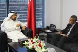 استقبل نائب رئيس مجلس الوزراء الشيخ خالد بن عبد الله آل خليفة في مكتبه بقصر القضيبية اليوم الثلثاء (6 مايو / أيار 2014) مؤسس مركز فن الحياة الدولي سري سري رافي شنكر(Sri Sri Ravi Shankar).