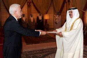 جاء ذلك خلال استقبال جلالته في قصر الصخير أمس الثلثاء (13 مايو/ أيار 2014) سفير مملكة البحرين لدى دولة الكويت رئيس اللجنة العليا لمؤتمر حوار الحضارات والثقافات الشيخ خليفة بن حمد آل خليفة الذي استضافته مملكة البحرين تحت شعار: “الحضارات في خدمة الإنسانية” حيث تشرف بإهداء جلالته كتاباً بعنوان: “حوار الحضارات رؤية ملك”، الذي قام بإعداده وجمعه، ويتضمن كلمات جلالة الملك المتعلقة بحوار الحضارات ولقاءاته وخطب جلالته الدينية في مختلف المناسبات، إضافة إلى كتاب آخر هو عبارة عن بحوث علمية توثيقية لمؤتمر حوار الحضارات والثقافات.