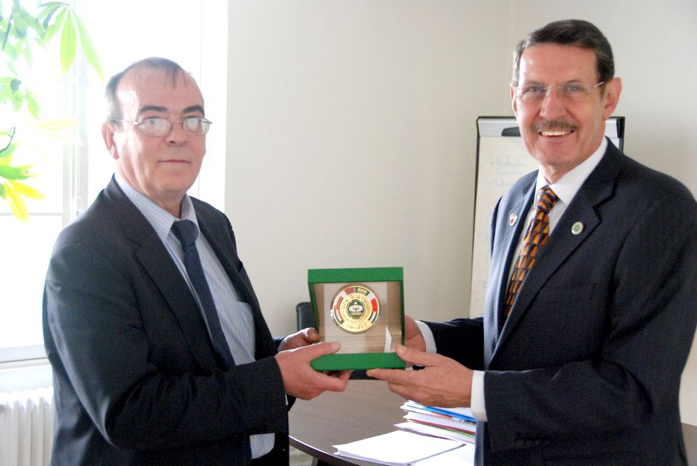 بحث نائب رئيس جامعة الخليج العربي خالد طباره مع رئيس جامعة فرساي الفرنسية جان لوك فيسيار سبل التعاون المستقبلي في المجال البحثي والأكاديمي بين الجامعتين، خلال زيارته الأخيرة إلى العاصمة الفرنسية باريس على هامش البرنامج التدريبي الذي شارك فيه أخيرا طلبة المعهد العربي الفرنسي لإدارة الأعمال في جامعة إيسك الفرنسية.