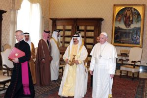 التقى عاهل البلاد حضرة صاحب الجلالة الملك حمد بن عيسى آل خليفة، اليوم الاثنين (19 مايو / أيار 2014) سكرتير دولة حاضرة الفاتيكان المونسنيور بييترو بارولين وذلك في اطار الزيارة الحالية التي يقوم بها جلالته الى حاضرة الفاتيكان.