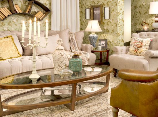 ولابتكار غرفة المعيشة الريفية المريحة هذه، فكر بمفروشات رشيقة واكسسوارات منتقاة، ابدأ بأريكة ومقعد بحجم صغير مناسب، مُزررين بطريقة جميلة مع أرجل خشبية كلاسيكية ملفوفة، بتنجيد من كتان بيج وعليهما كومة مساند لراحة متناهية، وأضف إليهما مقعداً جلدياً تقليدياً بلون بني «التوفي» بتفاصيل مُسمرة وطاولة قهوة بيضاوية من طابقين لاستغلال أمثل للمساحة، والكل يطفو فوق سجادة منسوجة يدوياً، وأضف لمستك الشخصية مع مجموعة متنوعة من خيارات الإضاءة والاكسسوارات الفريدة، من شمعدان كلاسيكي ومصباح طاولة قاعدته على شكل جرة زنجبيل، إضافة إلى مجموعة غريبة من جرار ومزهريات خزفية.