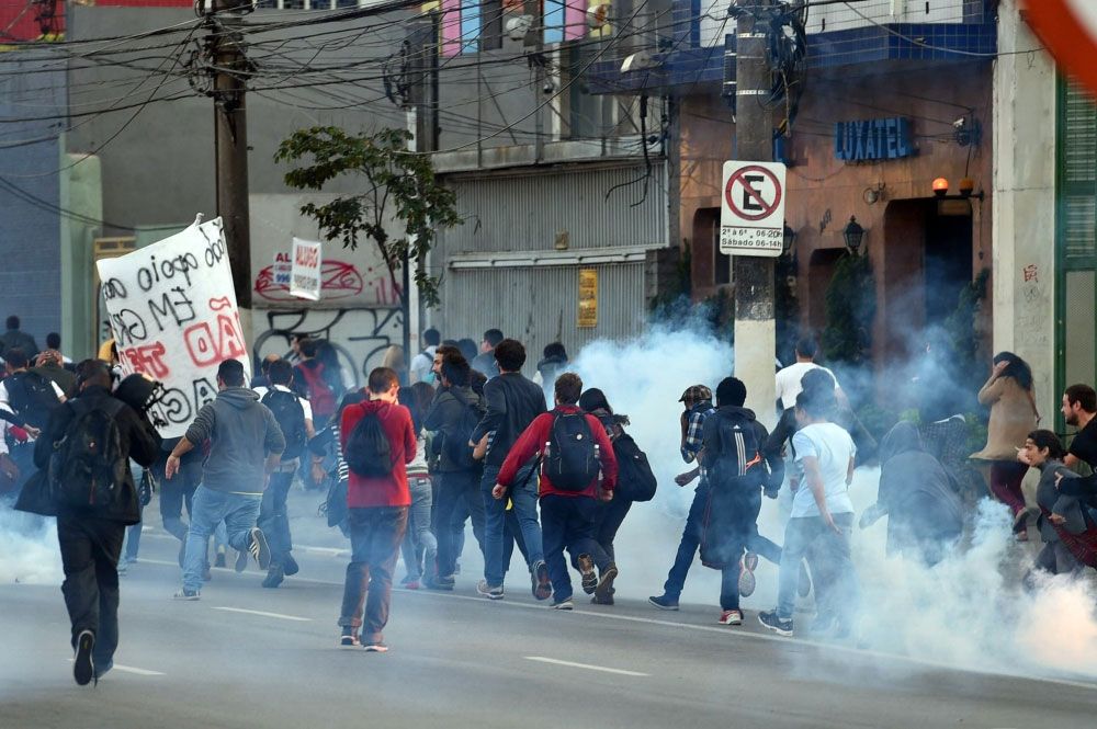 وأشعل المحتجون النيران في مستوعبات النفايات حاولوا استخدماها لإقفال شارع رئيسي في المركز التجاري البرازيلي، ما دفع الشرطة الى اطلاق قنابل صوتية والغاز المسيل للدموع لتفريقهم.