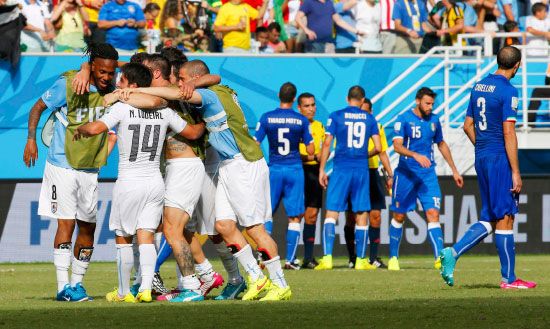 حقق منتخب أوروغواي فوزا صعبا وثمينا على حساب منتخب ايطاليا بنتيجة 1/0 الثلثاء ضمن منافسات الجولة الأخيرة من دور المجموعات في كأس العالم 2014.
