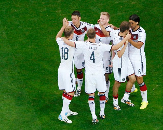 وانتهى الوقت الأصلي للمباراة بتعادل الفريقين سلبيا ثم خطف البديل اندري شورله هدف السبق لألمانيا في الدقيقة الثانية من الشوط الإضافي الأول مستغلا تمريرة زميله توماس مولر، الذي فشل في تسجيل خامس أهدافه في المونديال حتى الآن ليتوقف رصيده عند أربعة أهداف محتلا المركز الثاني في قائمة الهدافين متساويا مع الأرجنتيني ليونيل ميسي والبرازيلي نيمار، بفارق هدف واحد خلف الكولومبي جيمس رودريجيز الذي سجل خمسة أهداف.