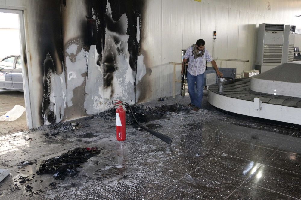 وقال مسؤول امن المطار الجيلاني الداهش لفرانس برس ان "المطار تعرض صباح اليوم (الاحد) لهجوم بقذائف الهاون والصواريخ ومدفعيات دبابات"، مؤكدا انه "الهجوم الاعنف" منذ بداية الاشتباكات الاحد. واوضح ان طائرة ليبيا في المدرج تحترق.