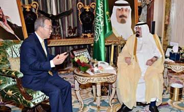 وذكرت وكالة الأنباء السعودية الرسمية (واس) أن من المقرر أن يلتقي بان كي مون في وقت لاحق مع العاهل السعودي لعرض الجهود التي تقوم بها الأمم المتحدة لوقف العدوان الإسرائيلي على غزة .