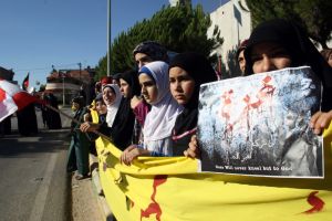 وهتف المشاركون بشعارات منددة بالعدوان الاسرائيلي وبالصمت العربي المتواطئ للأنظمة الحاكمة . وطالبت بتقديم الدعم العاجل لأهل غزة ودعم صمودهم .