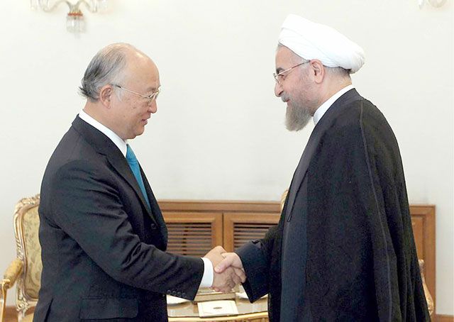 وخلال لقائه مع الرئيس روحاني، أعرب رئيس الوكالة الدولية للطاقة الذرية عن أمله «في أن يستمر هذا التعاون بروح تتسم بمزيد من الإيجابية».