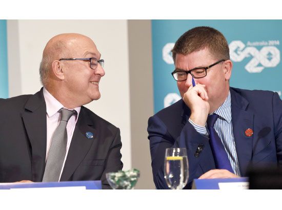 واجتمع وزراء المالية وحكام البنوك المركزية تحضيراً لقمة رؤساء الدول والحكومات المقررة في تشرين الثاني/ نوفمبر في مدينة بريسبان على ساحل أستراليا التي تتولى الرئاسة الدورية لمجموعة العشرين.