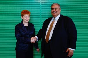 اجتمع وزير الصناعة والتجارة حسن عبدالله فخرو بمكتبه صباح اليوم الثلثاء (21 أكتوبر/ تشرين الأول 2014) رئيس مجلس إدارة مجموعة " إم تي كيو " السنغافورية كواه كوك كيم، وذلك بحضور وكيل الوزارة لشئون الصناعة أسامة محمد العريض.