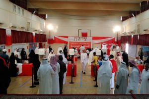 توافد العشرات من الرجال والنساء قبل الساعة الثامنة من صباح اليوم (السبت)، على مركز الاقتراع في مدرسة الخوارزمي الابتدائية للبنين مركز الاقتراع بسابعة المحرق.