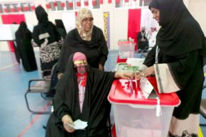 ترجم قاضي مركز الاقتراع العام بمدرسة الشيخ عبدالعزيز الثانوية للبنين ورقة التصويت لإحدى السيدات الأجنبيات لعدم إجادتها للغة العربية، أمس السبت 22 نوفمبر 2014.
