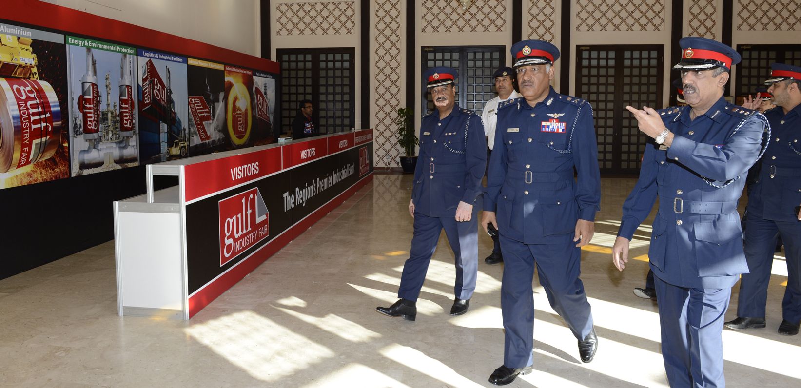 قام نائب رئيس الأمن العام اللواء ناجي فهد الهاشل يرافقه عدد من كبار ضباط وزارة الداخلية بزيارة صباح اليوم الإثنين (2 فبراير/ شباط 2015)، إلى موقع معرض الخليج للصناعة 2015 الذي ستستضيفه مملكة البحرين برعاية رئيس الوزراء صاحب السمو الملكي الأمير خليفة بن سلمان آل خليفة في الفترة مابين 3 إلى 5 فبراير/ شباط 2015، وذلك للاطلاع على الترتيبات والجاهزية الأمنية في توفير الحماية للمعرض.