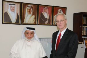 وأعرب ، لدى استقباله في مكتبه بقصر القضيبية رئيس جامعة الخليج العربي خالد عبد الرحمن العوهلي، عن أن البحرين تثمن عالياً وبكل فخر واعتزاز بأن يُنفذ على أرضها أحد أهم المشاريع الاستراتيجية القائمة بين البلدين والتي تحمل اسم المغفور له بإذن الله تعالى الملك عبد الله بن عبد العزيز آل سعود، ممثلاً في مشروع مدينة الملك عبد الله الطبية، والذي يجسد أبرز صور التلاحم والتعاضد بين البلدين ضمن الإطار الخليجي المشترك بهدف تعزيز خدمات التعليم الطبي ورفع نسبة التعليم في المنطقة، فضلاً عن دعم مستوى الخدمات الصحية والتنموية المقدمة للمواطن الخليجي بشكل عام.