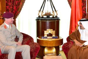 نوه القائد العام لقوة دفاع البحرين المشير الركن الشيخ خليفة بن أحمد آل خليفة، لدى لقائه في مكتبه بالقيادة العامة صباح أمس الثلثاء (24 مارس/ آذار 2015)، كبير المستشارين العسكريين البريطانيين في الشرق الأوسط الفريق توماس بيكت، برفقته رئيس العمليات المشتركة بالقوات المسلحة للمملكة المتحدة الفريق جون لوريمر، والوفد المرافق، بالتعاون القائم بين البلدين الصديقين في شتى المجالات ومنها ما يتعلق بتبادل الخبرات والتعاون في المجال العسكري.