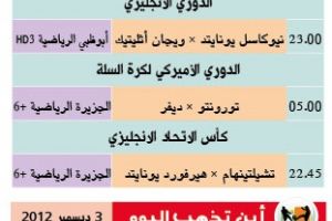 يضع الوسط الرياضي أمامكم برنامج اليوم الرياضي الكامل لقناة البحرين الرياضية لليوم الاثنين الموافق 3/12.