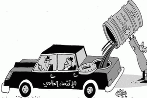 نشرت صحيفة الوطن العمانية اليوم الأحد (30 أبريل/ نيسان 2017) كاريكاتيراً يصوّر أن الأقتصاد عالمي يعمل على استنزاف موارد العالم الثالث.