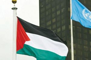 في مشهد احتفالي ووسط مشاركة ممثلين عن عدة دول رفع الرئيس الفلسطيني محمود عباس العلم الفلسطيني على منصة داخل مبنى الأمم المتحدة في نيويورك..