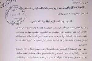 أصدرت وزارة التربية والتعليم تعميماً إلى مديري ومديرات المدارس بشأن المشاريع الطلابية بالمدارس، مطالبة فيه بعدم إلزام الطلاب بتنفيذ مشاريع خارج المدرسة "منزلية" حتى لا تتسبب في ...