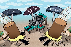 كاريكاتير "الاتحاد" الإماراتية: "داعش" يستجمّ في الرقة بينما سُحق في الموصل وسرت