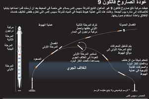 يمتلك صاروخ شركة سبيس إكس (فالكون 9) المصمم من مرحلتين مرحلة أولى قابلة لإعادة استخدامها ويمكنه القيام برحلة العودة والهبوط.