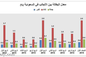 بلغ عدد الوافدين "الأجانب" العاطلين عن العمل في السعودية نحو 35.5 ألف عاطل، يشكلون 5.2 في المائة من إجمالي العاطلين في السعودية "سعوديين وغير سعوديين"، البالغ عددهم 682.3 ألف ..