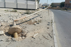 شكا عدد من المواطنين اليوم الأربعاء (3 فبراير/ شباط 2016)، جراء وجود عمود إنارة مكشوف وآخر ملقى في الشارع بالدوار الثالث بمدينة حمد، مشيرين أن ذلك يهدد حياة المارة.