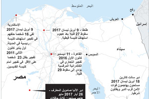 قتل نحو 70 مسيحياً في مصر منذ ديسمبر2016 في تفجيرات أعلن "داعش" المسئولية عنها استهدفت كنائس في مدن القاهرة والإسكندرية وطنطا