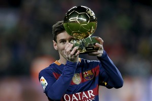 بالصور... ميسي يحتفل مع جماهير برشلونة بالكرة الذهبية الخامسة
