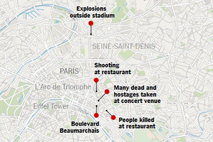 "نيويورك تايمز" تنشر خريطة مواقع الهجمات في باريس